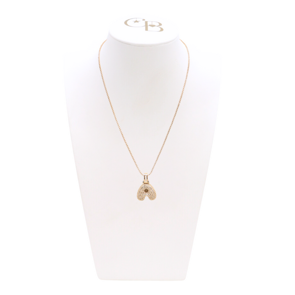 Light Gold Rhinestone Bubble Initial Letter Necklace