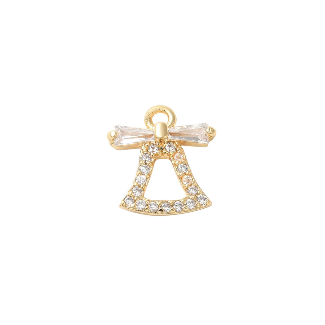 Ring in elegance with the Gold Chime Bell with Cubic Zirconia Charm — a graceful bell-shaped design adorned with shimmering cubic zirconia and topped with a clear baguette-cut gem. This charm captures the delicate sparkle and joyful jingle of a festive bell, making it a beautiful symbol of celebration, harmony, and cherished moments. A timeless accent for any bracelet or necklace.